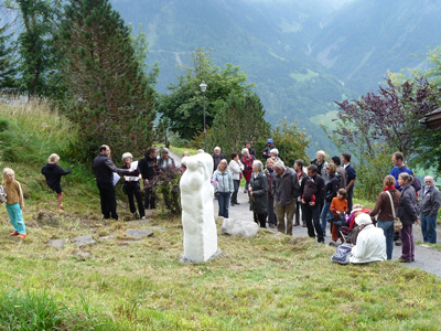 Während der festlichen Enthüllung von Consuela am 18. September 2010 wurden zur Einweihung verschiedene Reden gehalten. Erst durch den Präsidenten des Kunstvereins Glarus, dann durch den Empfänger der Leihgabe, den Gemeindepräsidenten, und dann durch das Stifterehepaar Stalder-Hausammann. Meine neue Kunsttheorie hat dort ihr erstes Publikum gefunden; darüber später gerne mehr.